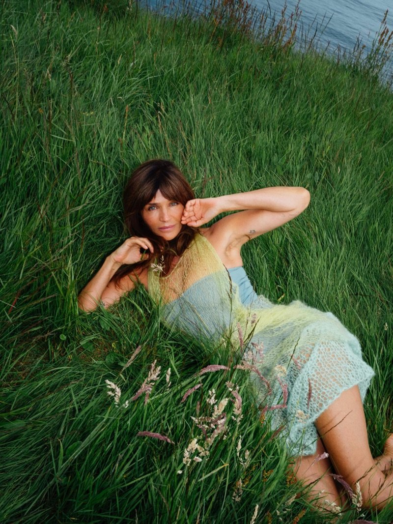 Helena Christensen’s role here transcends the traditional muse. She does not simply wear the pieces or stand before the camera—she creates the imagery herself, photographing French muse Louise Follain against windswept landscapes that echo the knitwear’s essence.